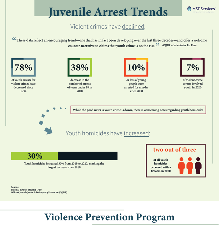 Violent crime arrests involving youth have declined throughout the past three decades. View this infographic to learn about juvenile arrest trends and an evidence-based program that can help prevent juvenile justice system involvement.